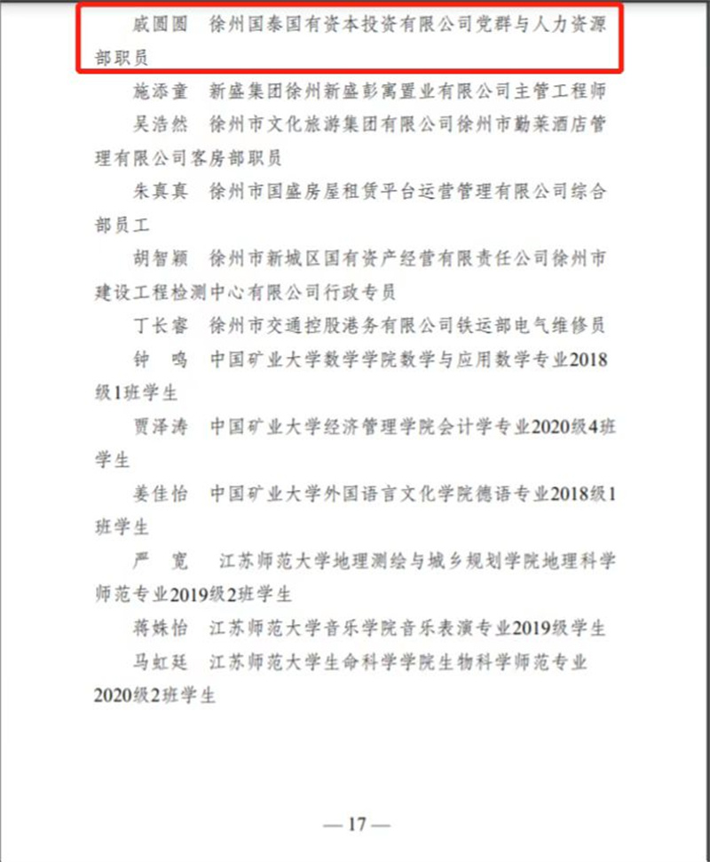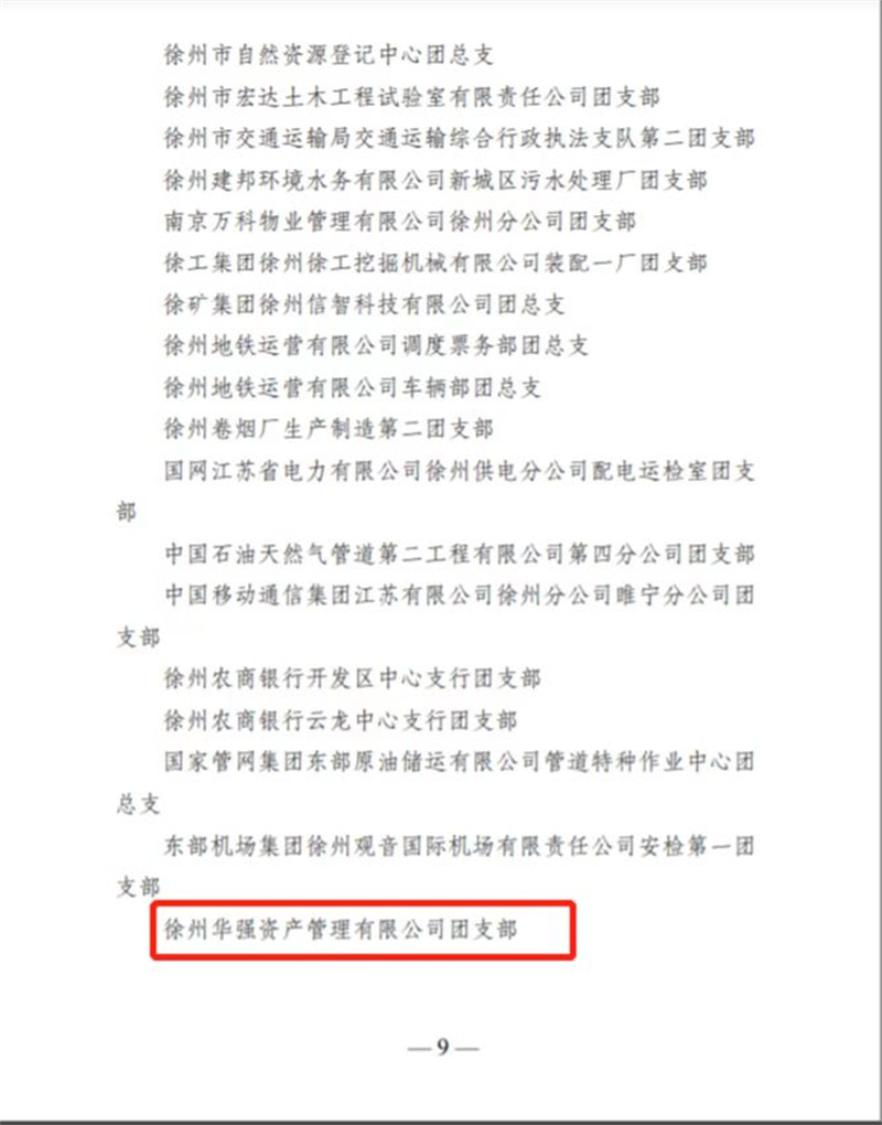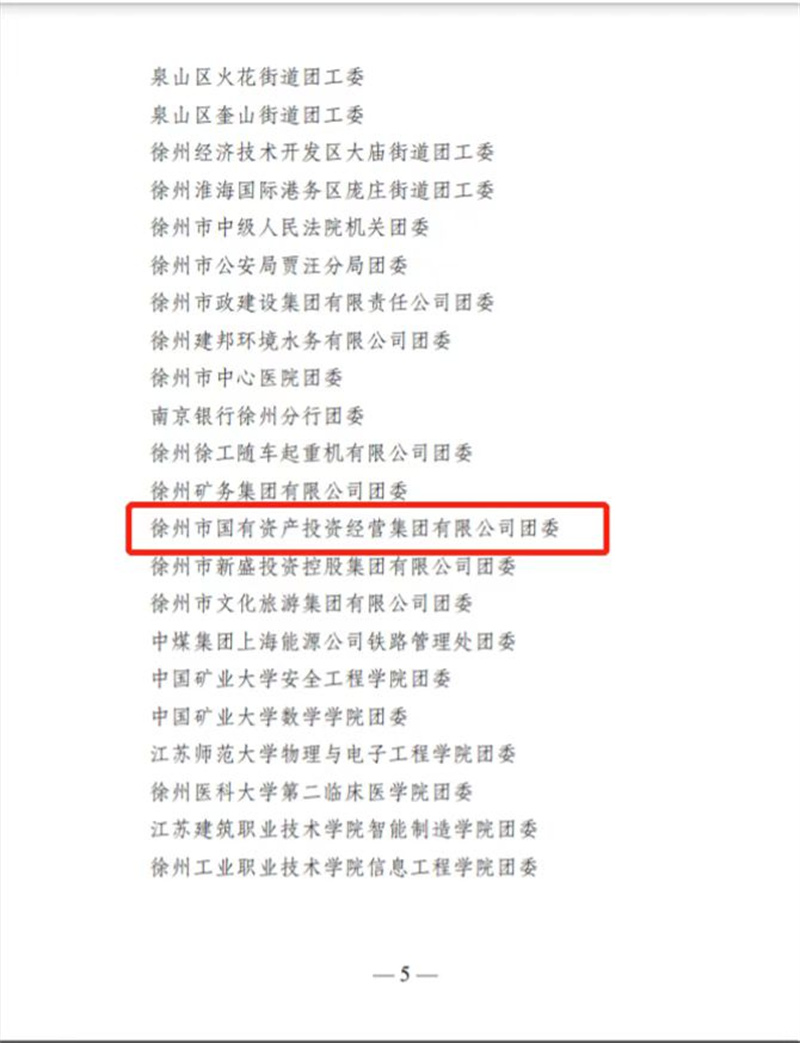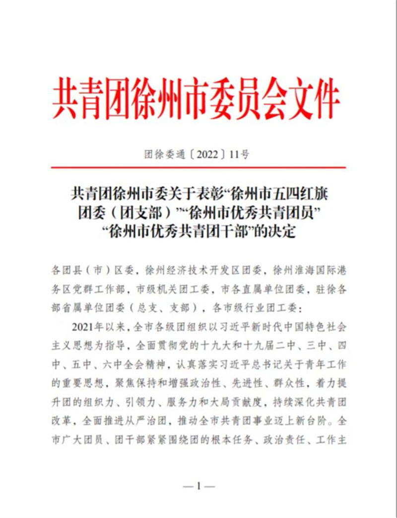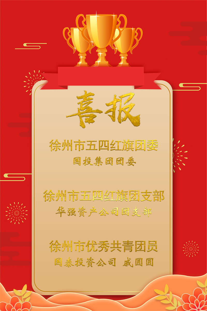 2022年是黨的二十大召開之年,也是中國共青團成立100周年。近日,共青團徐州市委對各級團組織及個人作出表彰。其中,國投集團團委榮獲“五四紅旗團委”稱號、華強資產(chǎn)公司團支部榮獲“五四紅旗團支部”稱號,國泰投資公司戚圓圓同志榮獲“優(yōu)秀共青團員”稱號。