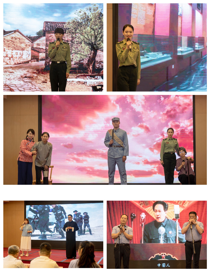 活動邀請淮塔管理中心教育交流處處長溫良以及淮海戰(zhàn)役紅色故事宣講團(tuán)成員,為我們帶來了一場生動的沉浸式紅色故事會。在背景視頻《初心永恒》的渲染下,講解員分別講述了《一根小竹竿》《相隔七十年的團(tuán)圓》《張樹才》和《一頭黃?!?,并演繹了情景黨課《等待》。從不同視角展示了淮海戰(zhàn)役中的地下黨員、解放戰(zhàn)士、支前群眾,為了新中國的解放事業(yè)無私奉獻(xiàn)的愛國情懷及偉大精神。