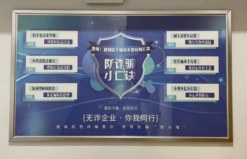 為切實(shí)保障廣大職工財(cái)產(chǎn)安全,按照省委政法委等七部門(mén)《開(kāi)展“無(wú)詐社區(qū)(村)”“無(wú)詐機(jī)關(guān)(單位)”無(wú)詐校園“無(wú)詐企業(yè)”創(chuàng)建活動(dòng)的行動(dòng)方案》的通知,國(guó)投集團(tuán)積極響應(yīng),開(kāi)展反詐宣傳活動(dòng)。通過(guò)在集團(tuán)公司辦公區(qū)域、公告欄處張貼防詐騙宣傳海報(bào),號(hào)召全體職工學(xué)習(xí)反詐知識(shí),增強(qiáng)防詐技能,提高識(shí)騙防騙能力,并時(shí)刻提醒廣大職工,強(qiáng)化防騙意識(shí),謹(jǐn)防上當(dāng)受騙。