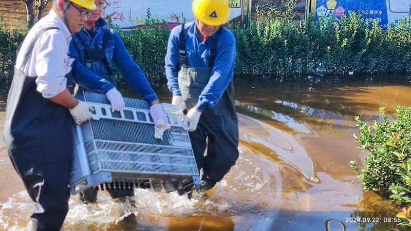 9月19日02時(shí)57分,暴雨黃色預(yù)警信號(hào)解除,面對(duì)一片狼藉的現(xiàn)場(chǎng),全體員工沒(méi)有絲毫懈怠,迅速?gòu)目购閾岆U(xiǎn)模式轉(zhuǎn)入查驗(yàn)設(shè)備運(yùn)行狀況與恢復(fù)廠容廠貌階段?!爸煊瘢s緊采購(gòu)下水褲、烘干機(jī)、消毒液?!眲⒅冶榉乐褂旰蟠紊鸀?zāi)害、加快設(shè)備檢查與恢復(fù)進(jìn)程,迅速做出工作安排,對(duì)受損物資進(jìn)行全面、精準(zhǔn)地統(tǒng)計(jì),詳細(xì)記錄受損程度和原因,向保險(xiǎn)公司提交詳盡的理賠材料。經(jīng)統(tǒng)計(jì),除3臺(tái)逆變器、1臺(tái)柜式空調(diào)、1扇電動(dòng)大門(mén)等設(shè)備受損外,光伏區(qū)組件、支架、電纜、箱變、逆變器、匯流箱等重要發(fā)電設(shè)備均未受損。