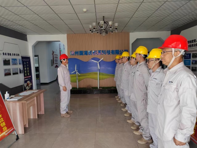 向風(fēng)而行,主動(dòng)出擊。氣象部門發(fā)布臺風(fēng)預(yù)警后,國湖公司第一時(shí)間召開專題會議,立即啟動(dòng)應(yīng)急預(yù)案,迅速制定一系列針對性強(qiáng)、操作性實(shí)的應(yīng)急措施,成立由現(xiàn)場負(fù)責(zé)人擔(dān)任組長的應(yīng)急指揮小組,明確職責(zé)分工,統(tǒng)一指揮協(xié)調(diào)臺風(fēng)應(yīng)對工作,確保各項(xiàng)防范措施逐一落實(shí)。安排遠(yuǎn)景風(fēng)機(jī)專業(yè)技術(shù)人員組成設(shè)備搶險(xiǎn)組,負(fù)責(zé)對風(fēng)電場設(shè)備進(jìn)行緊急搶修和維護(hù),確保不留死角、不留盲區(qū),切實(shí)保障風(fēng)機(jī)“零”隱患;配合無人機(jī)、望遠(yuǎn)鏡、對講機(jī)等裝備,全面排查地勢低洼、積水地區(qū)的戶外設(shè)備以及集電線路,檢查全場176基桿塔基礎(chǔ),加固松動(dòng)部位,確保設(shè)備安全運(yùn)行。