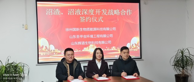 近日,徐州國新生物質(zhì)能源科技有限公司與山東圣甲蟲環(huán)境工程有限公司、山東輝道生物科技有限公司在國新公司二樓會議室舉行沼渣、沼液深度開發(fā)戰(zhàn)略合作協(xié)議簽約儀式。國新公司班子成員,圣甲蟲公司、輝道公司相關(guān)人員出席活動。