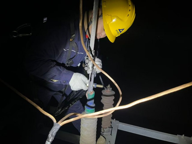 險(xiǎn)情就是命令。巡檢人員第一時(shí)間向站長(zhǎng)及值長(zhǎng)匯報(bào)現(xiàn)場(chǎng)情況,16時(shí)50分,站長(zhǎng)與值長(zhǎng)抵達(dá)現(xiàn)場(chǎng)復(fù)查確認(rèn)隱患后,迅速啟動(dòng)應(yīng)急處置預(yù)案,統(tǒng)籌調(diào)配搶修人員、物資及工具,組建專項(xiàng)搶修小組。17時(shí)23分,搶修小組完成風(fēng)機(jī)斷電、線路停電及安全隔離措施,嚴(yán)格按照標(biāo)準(zhǔn)化作業(yè)流程開展銅鋁過渡線夾更換工作。作業(yè)過程中,全體搶修人員分工明確、默契配合,克服夜間低溫等不利因素,緊盯施工質(zhì)量與安全細(xì)節(jié),于20時(shí)30分順利完成新線夾更換,并對(duì)A、B兩相線夾部位進(jìn)行全面復(fù)檢,確保設(shè)備運(yùn)行狀態(tài)穩(wěn)定。20時(shí)50分,35kV集電A回線路成功恢復(fù)送電,所有風(fēng)機(jī)正常并網(wǎng)運(yùn)行。