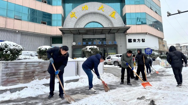 沖鋒在前,擔(dān)當在風(fēng)雪一線熠熠生輝。能源板塊各電站職工頂風(fēng)冒雪,爭分奪秒清掃光伏區(qū)、風(fēng)機場設(shè)備積雪,運用科技手段嚴密巡檢,以專業(yè)守護著能源“生命線”。遠大、新亞等生產(chǎn)型企業(yè)自發(fā)清掃主干道與車間通道,為物流暢通與安全生產(chǎn)保駕護航。勞代中心黨員清晨便開辟出辦事大廳的“安全通道”,擦亮服務(wù)民生窗口。港華燃氣青年突擊隊迅速啟動應(yīng)急預(yù)案,分組奔赴全市各調(diào)壓站點,冒雪檢查設(shè)備、清理積雪,以精準操作守護著千家萬戶的灶臺溫暖,切實履行“保民生、穩(wěn)供氣”的社會責(zé)任。成功大廈、科創(chuàng)園、國泰品山大廈、藍天商業(yè)公司等商場樓宇中,黨員先鋒隊快速清理出入口積雪,全力保障業(yè)戶出行便利與安全。醫(yī)院干部職工在門診大廳出入口、住院部通道等區(qū)域分工協(xié)作,用忙碌的身影開辟出安全暢通的就醫(yī)通道,在皚皚白雪中彰顯溫暖明亮的醫(yī)者仁心。集團本部大樓前,青年突擊隊聞令而動,輪流接力掃冰除雪,確保了公共區(qū)域通行無阻。從生產(chǎn)保供到服務(wù)前沿,國投人用“擔(dān)當務(wù)實、團結(jié)協(xié)作”的實際行動在皚皚白雪中踏出了一條條用青春守護的熱忱征途。