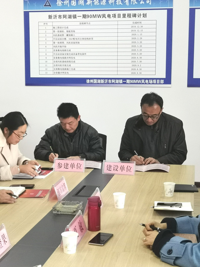 為進(jìn)一步嚴(yán)格貫徹落實(shí)集團(tuán)公司黨委工程建設(shè)廉潔從業(yè)決策部署,有效從源頭預(yù)防各類違規(guī)違紀(jì)違法行為發(fā)生,為新沂市阿湖鎮(zhèn)一期90MW風(fēng)電項(xiàng)目工程建設(shè)、項(xiàng)目管理營(yíng)造良好的廉潔環(huán)境。12月3日下午,國(guó)投環(huán)能公司全資企業(yè)徐州國(guó)湖新能源科技有限公司(以下簡(jiǎn)稱“國(guó)湖公司”)在新沂市阿湖鎮(zhèn)便民服務(wù)中心舉行了《工程建設(shè)廉潔從業(yè)責(zé)任書》簽字儀式。國(guó)投環(huán)能公司黨總支書記、國(guó)湖公司董事長(zhǎng)孫雷,國(guó)投環(huán)能公司紀(jì)檢聯(lián)系人,國(guó)湖公司風(fēng)電項(xiàng)目部代表及工程總承包、項(xiàng)目監(jiān)理、跟蹤審計(jì)等參建單位代表參加了儀式,簽字儀式由國(guó)投環(huán)能公司總經(jīng)理助理、國(guó)湖公司總經(jīng)理余躍主持。集團(tuán)公司紀(jì)檢監(jiān)察室副主任夏敏到場(chǎng)見(jiàn)證簽訂儀式。