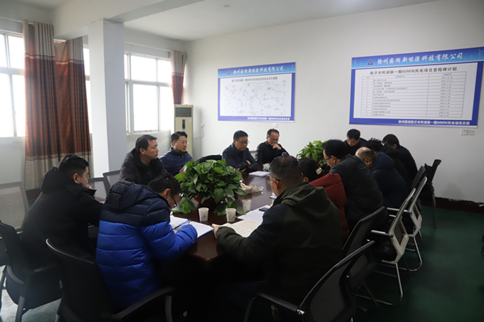 1月6日,新年伊始,冬雨連連。集團(tuán)公司總經(jīng)理姜巖,副總經(jīng)理?xiàng)铐g,帶領(lǐng)有關(guān)部室人員到國投環(huán)能公司所屬企業(yè)徐州國湖新能源科技有限公司(以下簡稱“國湖公司”)考察調(diào)研,專題調(diào)度國湖公司一期90MW風(fēng)電項(xiàng)目推進(jìn)情況。國投環(huán)能公司董事長孟慶先、黨總支書記孫雷、財(cái)務(wù)總監(jiān)趙芹及有關(guān)人員陪同調(diào)研。