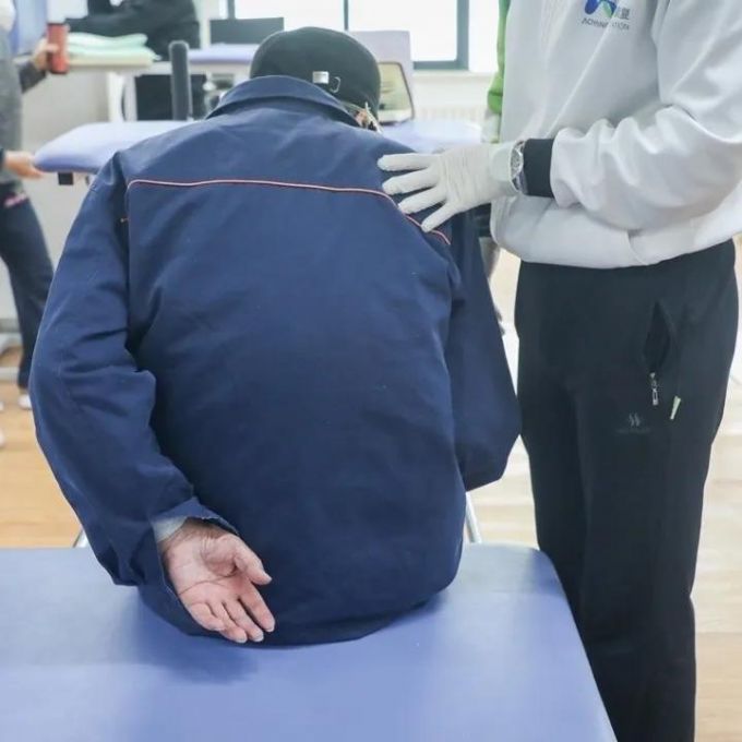 ▲老趙手臂力量逐漸增強(qiáng),可以抬起和伸至背后