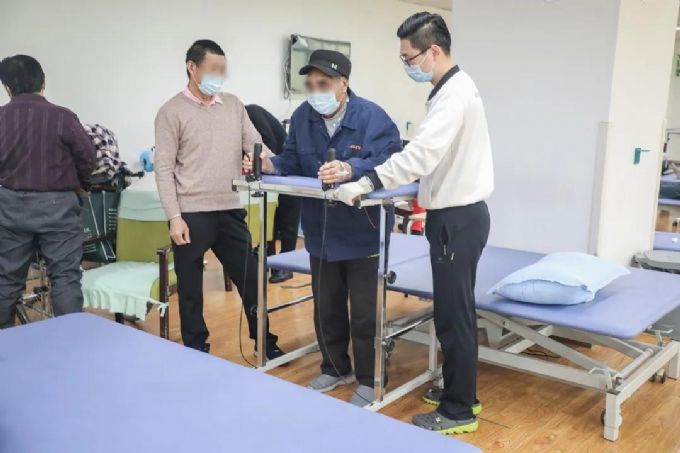 老趙的康復(fù)治療師劉松,休息路過老趙病房時,總要來老趙床前打個招呼,劉松說:“疫情期間不讓探視,老趙以前兒子兒媳天天來看他,現(xiàn)在特殊時期怕他寂寞,我路過時候就跟他聊兩句,他開心了,心情會好一些,也更有動力。”